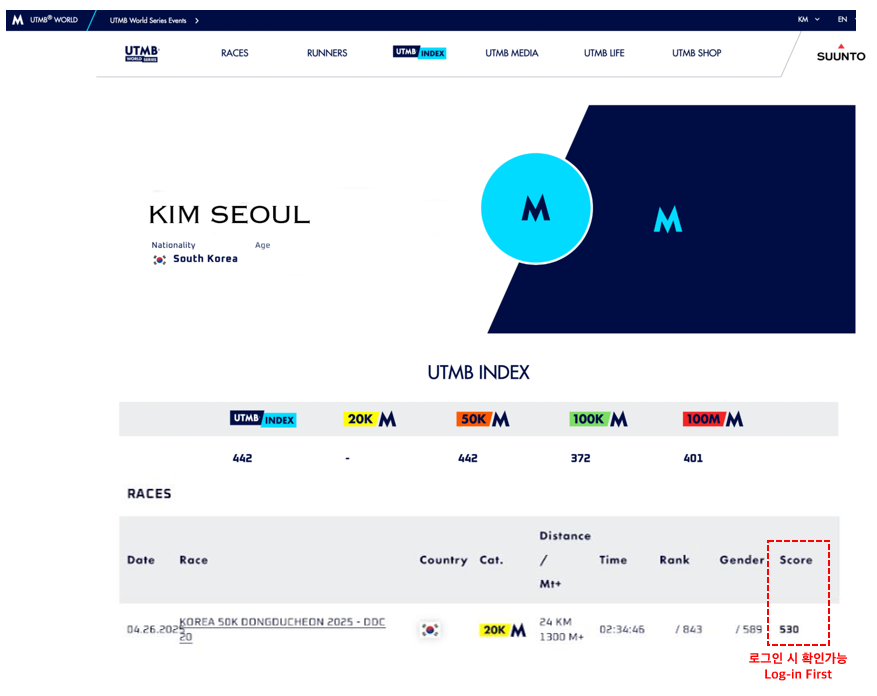 -You can obtain proof of your UTMB Index and ITRA points from the websites below. Please refer to the sample images at the bottom.